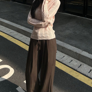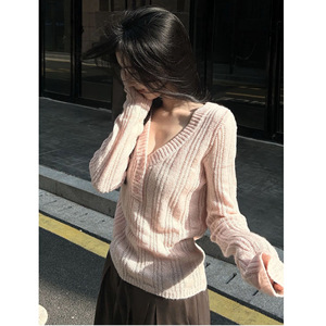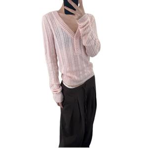 早秋时尚领毛织上衣女2025螺纹镂空针织衫粉色其它