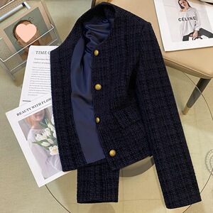 今年流行藏青色小香风西装外套女2025秋季新款气质名媛休闲上衣