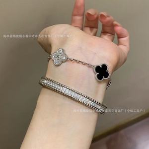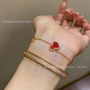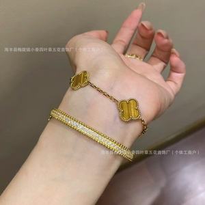 高级感V金满天星珠边排钻手镯镀18K简约百搭窄版满钻珠边手环叠戴