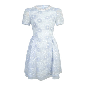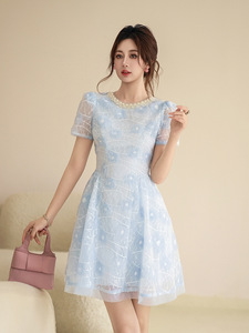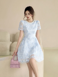 圆领a字短袖连衣裙女夏季新款法式复古千金风气质收腰裙子45248