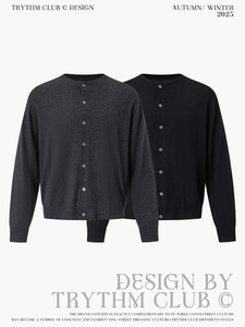 TRYTHMCLUB 复古优雅圆领针织开衫潮流男女同款毛衣外套