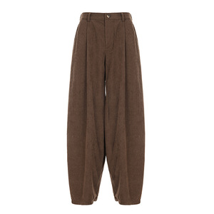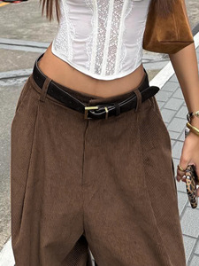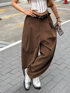 美式复古休闲舒适灯芯绒打褶弯刀裤新款个性街头百搭基础宽松长裤