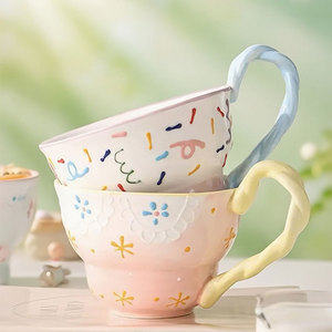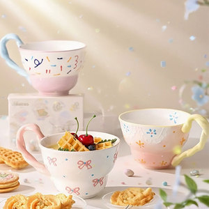 大容量早餐杯创意手绘陶瓷杯子家用喝水杯高颜值可爱牛奶燕麦杯子