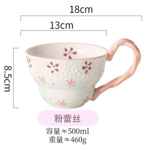粉色小花-曲把杯
