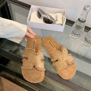 厚底勃肯鞋2025秋季新款潮牌一字毛毛拖鞋秋冬季居家外穿保暖棉拖