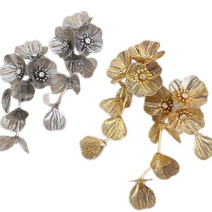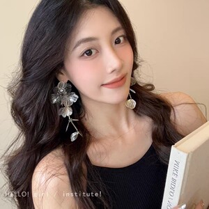 复古新中式金色流苏花朵耳环个性夸张高级感长款耳坠耳钉新娘耳饰