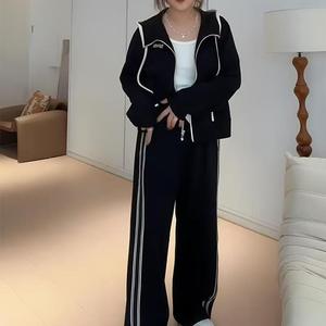 胖佳佳大码韩版运动撞色连帽外套休闲两件套秋冬显瘦套装