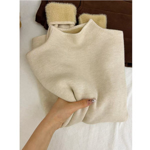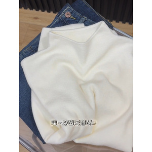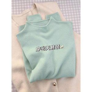 豆绿色半高领软糯针织衫女秋冬季毛衣内搭打底衫修身正肩显瘦上衣