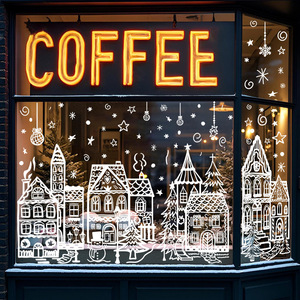 跨境圣诞节冬季雪人雪花贴纸白色圣诞树圣诞老人节日派对装饰窗贴