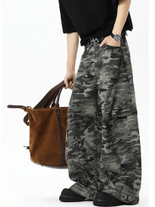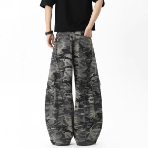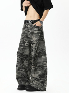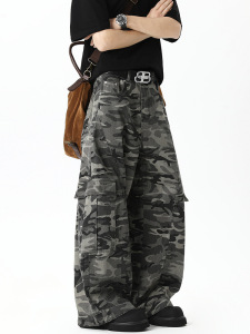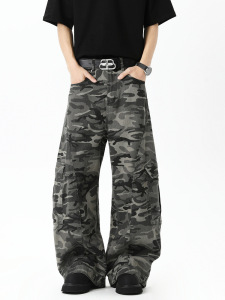 秋冬新款美式复古多口袋工装迷彩裤男潮牌高街痞帅直筒阔腿弯刀裤
