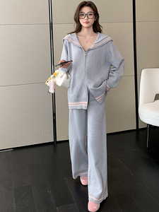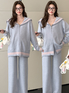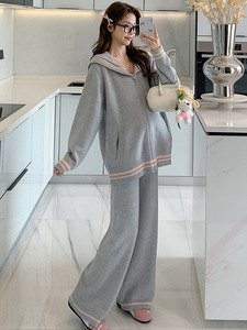 2025新款早秋孕妇套装休闲时尚针织毛衣长袖格纹拼接设计款两件套