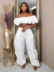 欧美女装 2025秋冬新款 时尚休闲个性纯色露脐抹胸抽皱长裤套装