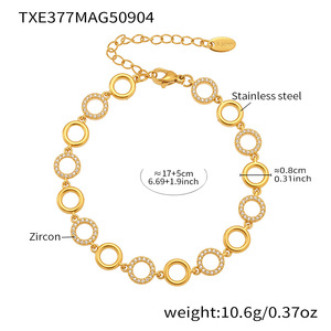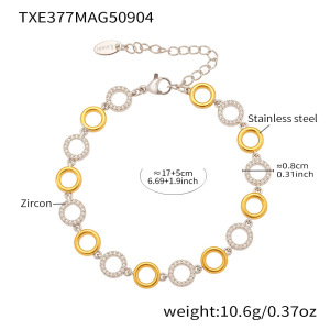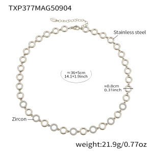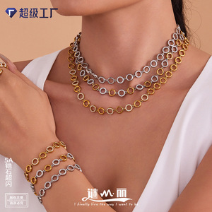 谜丽不锈钢圆圈镶锆石手链项链套装欧美时尚轻奢百搭夸张珠宝首饰