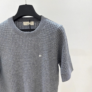 M系logo字母时尚女装高版夏新款别致百搭字母提花扭绳针织上衣