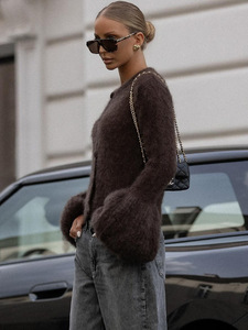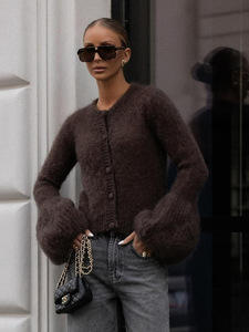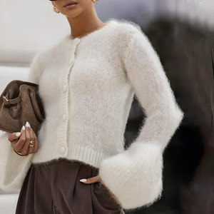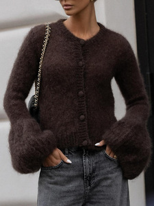 复古街头早秋软糯针织开衫喇叭袖修身圆领排扣毛衣小外套时尚女装