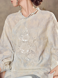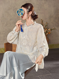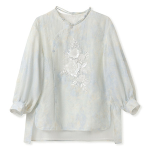 新中式2025新款国风文艺斜襟设计上衣早秋复古盘扣刺绣衬衫 N7023