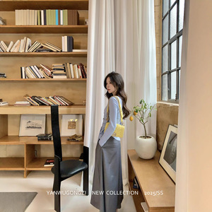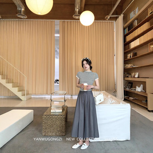 烟雾公子 韩系时尚气质高腰显瘦A字百褶裙裤春款灰色宽松百搭半裙