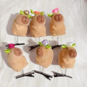 跨境爆款卡皮巴拉发夹立体弹簧卖萌头饰儿童卡通植绒配饰边夹批发