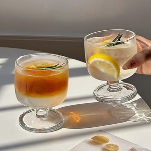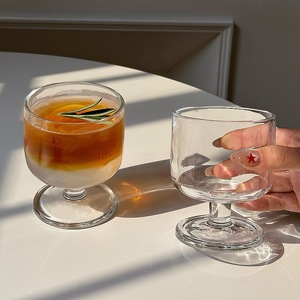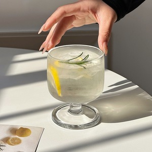 小众复古玻璃杯ins风矮脚杯冰美式咖啡杯拿铁杯 特调饮品果汁杯子