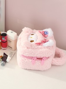 日系毛绒美乐蒂小羊可爱小方包化妆洗漱包便携旅行整理包拍立得包