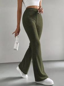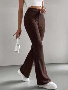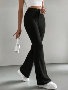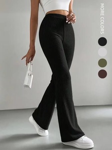 2025跨境春秋新款喇叭裤女士纯色休闲裤罗纹针织时尚百搭修身长裤