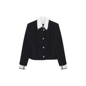 小仙倪子小香风外套女秋季超好看假两件撞色毛呢高级爆款毛呢上衣