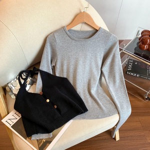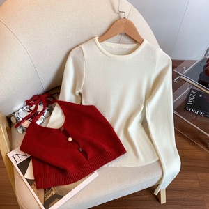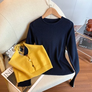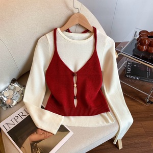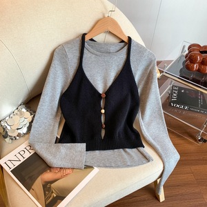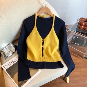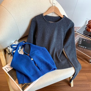 十三行2025秋季新款针织挂脖背心女长袖圆领毛衣纯欲风穿搭两件套