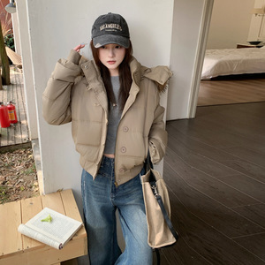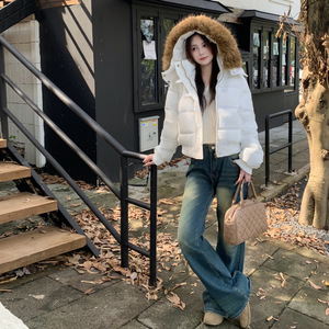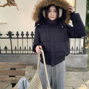 跨境外贸棉服女短款韩版2025冬新款小个子保暖修身大毛领外套学生