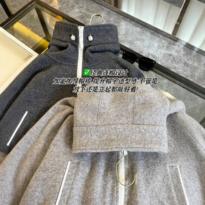 鹅家 100羊毛双面抓绒厚实双面抓绒连帽飞行员夹克外套