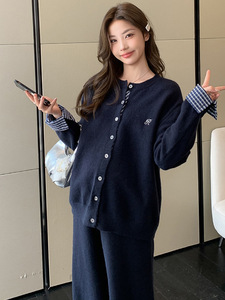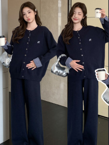 2025秋遮肚不显怀孕妇套装新款韩系格子宽松慵懒风加厚毛衣两件套