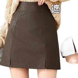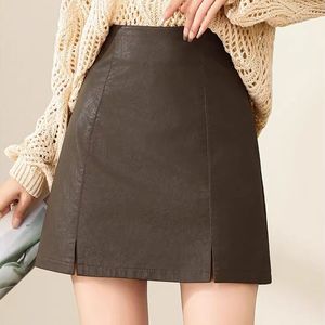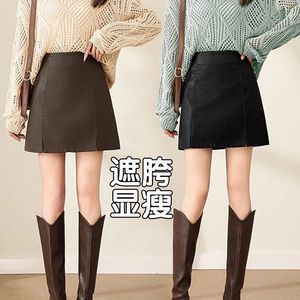 大码皮裙短裙女2025新款高腰a字裙子PU棕色包臀裙半身裙胖mm秋冬