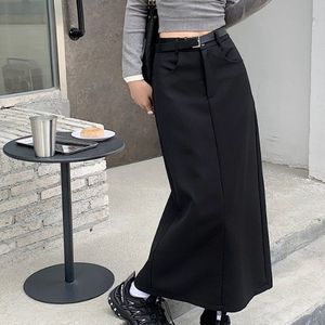 美式工装半身裙女春秋小个子西装半步裙高腰黑色开叉长裙子直销