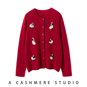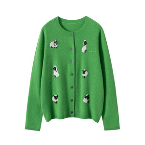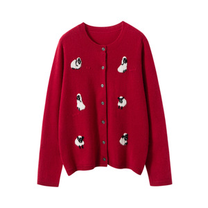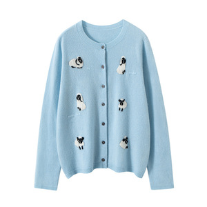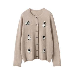 羊绒衫女秋冬新款针织开衫软糯亲肤感毛衣外套手工刺绣小羊提花衫