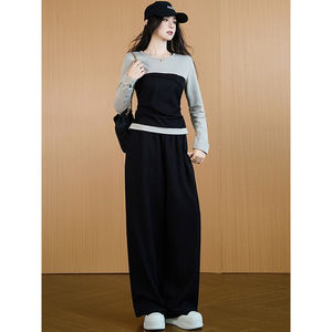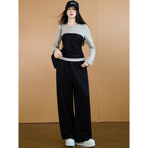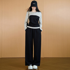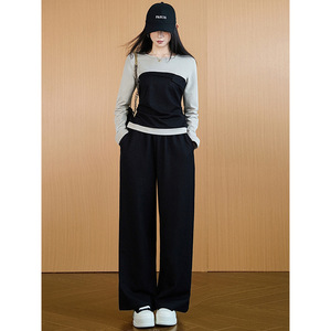 深圳南油欧货运动套装女2025秋修身显瘦小众长袖T恤阔腿裤两件套