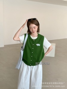 琪镌绘制针织马甲秋季新款韩版宽松显瘦圆领开衫背心上衣女516369
