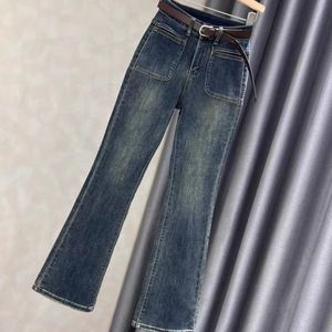 小个子八九分加绒喇叭裤女秋冬新款高腰保暖加厚阔腿牛仔长裤子女