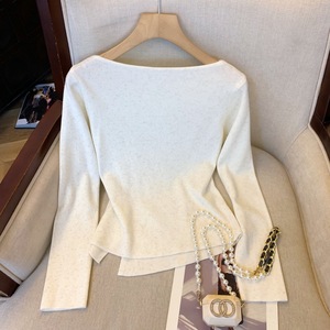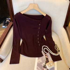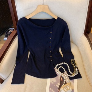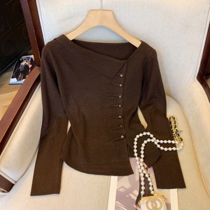 休闲老钱风长袖针织衫女秋冬季不规则设计感打底别致开叉下摆上衣