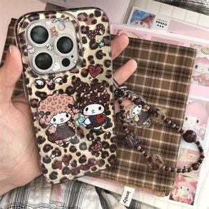 闪片棕色豹纹小羊美乐蒂适用iPhone16苹果15ProMax手机壳14新款13
