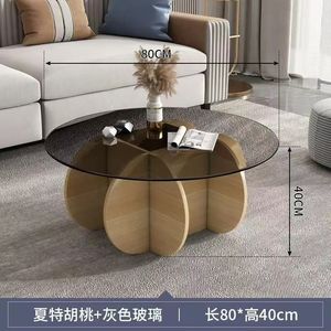 玻璃茶几茶几轻奢现代客厅家用小户型简约圆形网红ins桌子极简