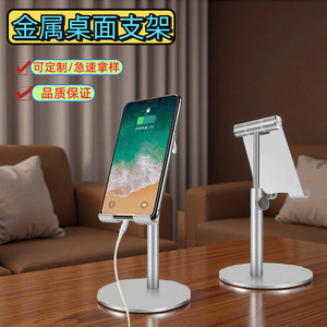 桌面手机支架平板桌面直播拍摄伸缩旋转懒人圆盘桌面金属支架