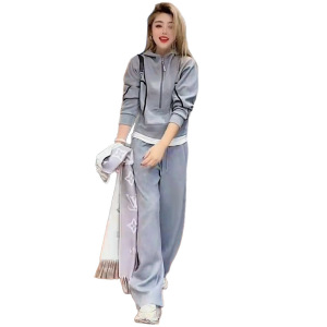 深圳南油潮流欧货套装女2025秋时尚洋气灰色连帽卫衣阔腿裤两件套