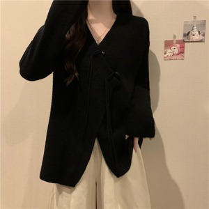 不规则软糯领毛衣开衫外套女秋冬微胖大码遮肚子宽松针织打底衫