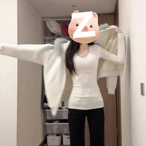 白色v领长袖t恤女秋冬基础款内搭修身打底衫春季百搭上衣学生潮流