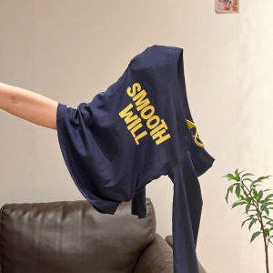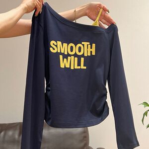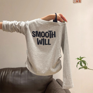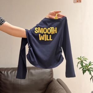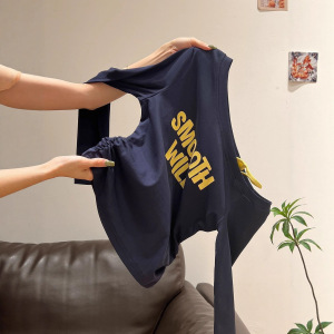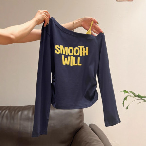 美式复古修身吊带新款秋季印花百搭假两件上衣斜肩长袖恤女潮