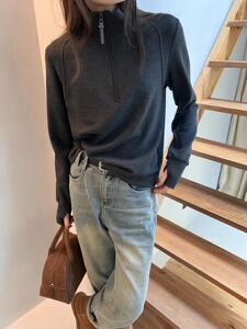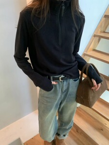 立领加绒卫衣女双面德绒打底衫2025新款秋冬设计感半拉链长袖上衣