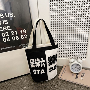 韩风少女心妈咪便当袋上班小拎包童趣涂鸦帆布包可爱插画水桶手提