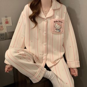 空气棉夹层睡衣女秋冬季新款可爱卡通格子开衫长袖加厚家居服套装