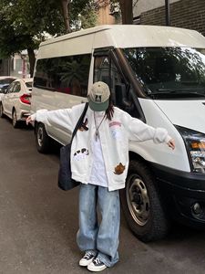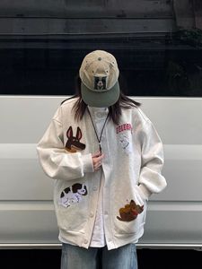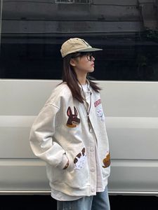 秋冬季美式复古小狗刺绣卫衣棒球服情侣chic百搭休闲宽松开衫外套