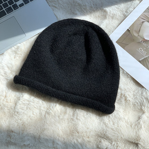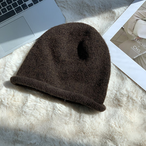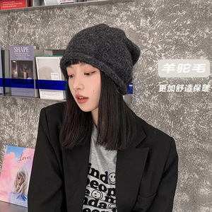 休闲风灰色毛线帽女秋冬百搭保暖针织帽子ins潮堆堆帽包头帽冷帽
