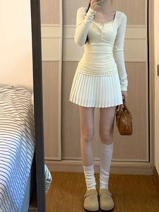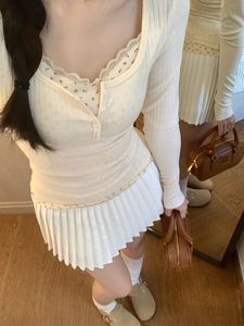 纯欲辣妹风设计感碎花拼接长袖T恤春秋修身假两件打底衫内搭上衣